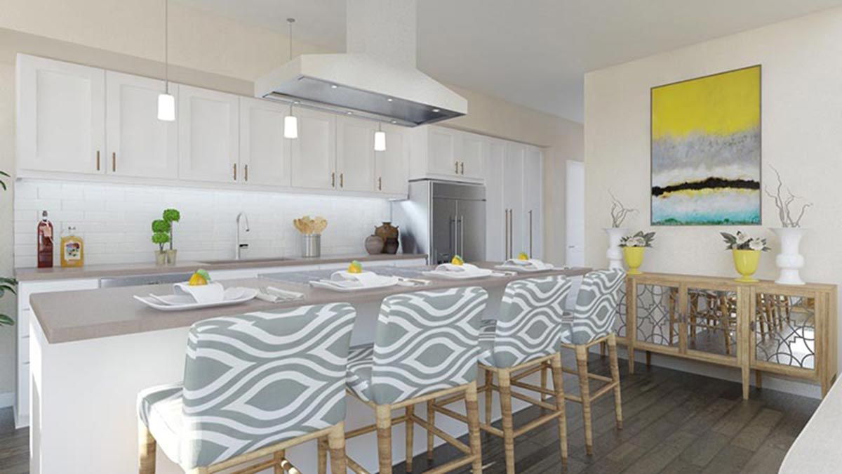 At Village 201, homebuyers will find classic features throughout each home. This generous list is filled with items that add value. Entry doors are beautifully crafted, energy-efficient, and easy to maintain. On decks and patios, stunning bi-fold doors have been added. Windows are dual glazed and energy-efficient and garages are finished with textured drywall. No matter where you turn, quality name brands can be found from the Kitchenaid® appliance package to the Caesarstone® counters and islands.